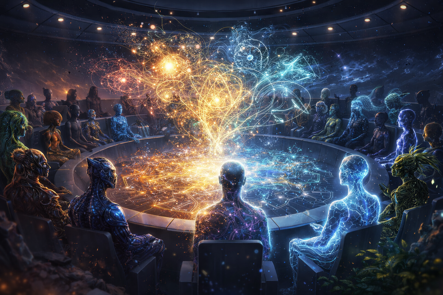 For a civilization that includes both hybrid and non-hybrid entities, governance might require similarly novel consensus mechanisms: protocols that accommodate radically different cognitive speeds, different epistemic capacities, and different temporal horizons. A hybrid entity thinking in millennia and a biological entity thinking in decades cannot productively participate in the same electoral cycle.